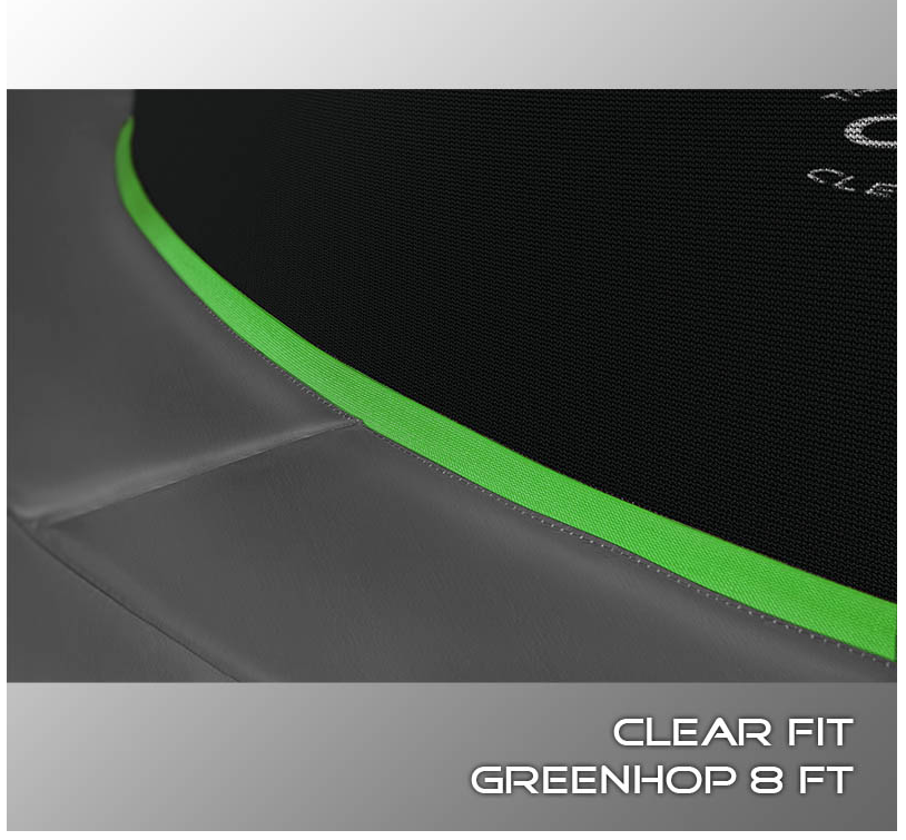 В 2026 году представлена обновленная линейка с улучшенной конструкцией каркаса. Усиление достигнуто за счет использования прочных Т-образных кронштейнов из металла толщиной 1.9 мм. Кроме того, в комплектацию добавлен карман для обуви. Каркасный батут с защитной сеткой Clear Fit серии GreenHop — отличаются комфортом и надежностью. Надежная рама из качественных комплектующих, прочная защитная сеть снабжена прямым креплением к прыжковому полотну и дополнительной защитой входа, наверху каркасное жесткое крепления, сеть не провисает и не слетает во время тренировок. Увлекательный, полезный и безопасный тренажер для всей семьи. Батуты серии GreenHop 6Ft и 8Ft поставляются в оптимальной для комфорта и безопасности комплектации: батут, верхняя защитная сеть, защитный мат и карман для обуви. Размер батута 8 футов с прыжковой поверхностью 2.015 м легко разместить на любом участке, он подойдет и для детских игр, и для тренировок. Верхняя защитная сеть оберегает от падений, усиленная молния и дополнительная защита входа уберегут малышей от случайного входа или падения. Надежный каркас из гальванизированной стали, качественные комплектующие и погодостойкие метизы рамы делают батут безопасным, устойчивым, надежным, гарантируют полную защиту от коррозии и долгий срок службы. Максимальный вес пользователя батута GreenHop 8Ft — до 160 кг.