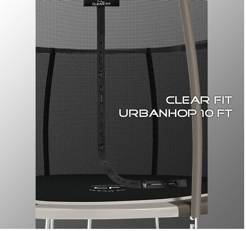 В 2026 году представлена обновленная линейка с улучшенной конструкцией каркаса. Усиление достигнуто за счет использования прочных Т-образных кронштейнов из металла толщиной 1.9 мм. Кроме того, в комплектацию добавлен карман для обуви. Каркасный батут с защитной сеткой Clear Fit серии UrbanHop — отличаются комфортом и надежностью. Надежная рама из качественных комплектующих, прочная защитная сеть снабжена прямым креплением к прыжковому полотну и дополнительной защитой входа, наверху каркасное жесткое крепление, сеть не провисает и не слетает во время тренировок. Увлекательный, полезный и безопасный тренажер для всей семьи. Батуты серии UrbanHop 10Ft, 12Ft, 14Ft и 16Ft поставляются в оптимальной для комфорта и безопасности комплектации: батут, верхняя защитная сеть, защитный мат, лестница и карман для обуви. Благодаря размеру батута в 10 футов и диаметру прыжковой поверхности 2.62 м он идеально подходит для дачного участка, размеры полотна позволяют комфортно тренироваться взрослым и развлекаться детям любого возраста. Верхняя защитная сеть оберегает от падений, усиленная молния и дополнительная защита входа уберегут малышей от случайного входа или падения. Надежный каркас из оцинкованной стали, качественные комплектующие и погодостойкие гальванизированные метизы рамы делают батут безопасным, устойчивым, надежным, гарантируют полную защиту от коррозии и долгий срок службы. Максимальный вес пользователя батута UrbanHop 10Ft — до 170 кг.