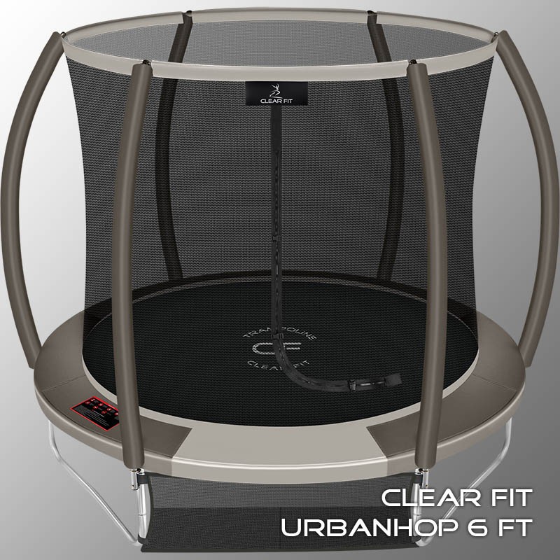 В 2026 году представлена обновленная линейка с улучшенной конструкцией каркаса. Усиление достигнуто за счет использования прочных Т-образных кронштейнов из металла толщиной 1.9 мм. Кроме того, в комплектацию добавлен карман для обуви. Каркасный батут с защитной сеткой Clear Fit серии UrbanHop — отличаются комфортом и надежностью. Надежная рама из качественных комплектующих, прочная защитная сеть снабжена прямым креплением к прыжковому полотну и дополнительной защитой входа, наверху каркасное жесткое крепление, сеть не провисает и не слетает во время тренировок. Увлекательный, полезный и безопасный тренажер для всей семьи. Батуты серии UrbanHop 6Ft и 8Ft поставляются в оптимальной для комфорта и безопасности комплектации: батут, верхняя защитная сеть, защитный мат и карман для обуви. Размер батута 6 футов с прыжковой поверхностью 1.42 м и его легко разместить на небольшом участке, он подойдет для детских игр и для тренировок. Верхняя защитная сеть оберегает от падений, усиленная молния и дополнительная защита входа уберегут малышей от случайного входа или падения. Надежный каркас из гальванизированной стали, качественные комплектующие и погодостойкие метизы рамы делают батут безопасным, устойчивым, надежным, гарантируют полную защиту от коррозии и долгий срок службы. Максимальный вес пользователя батута UrbanHop 6Ft — до 130 кг.