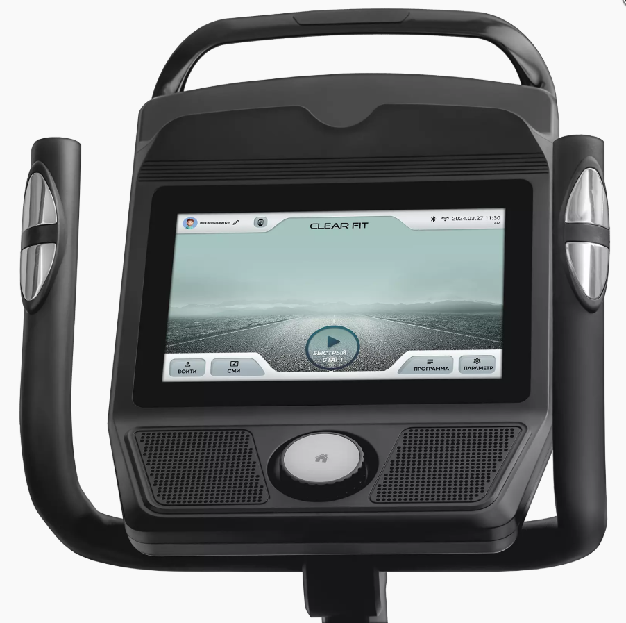 Высокотехнологичная консоль с большим цветным TFT-дисплеем 10” информативно отображает все параметры тренировки, полностью русифицирован. Интуитивно понятная навигация при помощи шайбы управления и Touch Screen отвечают за простое управление тренировкой. Программный пакет включает виртуальный ландшафт и целевые программы, в общей сложности 33 программы: пульсозависимые, пользовательские, предустановленные и фитнес-тест. TFT консоль подключается к сети Internet при помощи Wi-Fi соединения и оснащена встроенными приложениями: YоuТubе / Fасеbоok* / Netflix / Spotify / Prime Video / Instаgrаm* / Disney+. Воспроизведение музыки возможно при помощи Jack 3.5 мм и при помощи Bluetooth подключения. Вывод аудио сигналов осуществляется при помощи встроенных колонок, проводных и беспроводных наушников. Технология MirrorLink позволяет транслировать изображение Вашего гаджета на консоль тренажера. Встроенный USB порт отвечает за зарядку Вашего гаджета. Доступна интеграция полного графического изображения c дополнительными функциями на устройства iOS и Android (поддерживаются приложения Kinomap и Zwift), для подключения консоли используется встроенный Bluetooth-модуль.