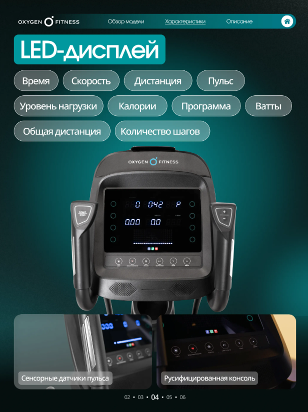 OXYGEN FITNESS MINT — продвинутый эллиптический тренажёр для домашних тренировок, ориентированный на пользователей, которые хотят получить клубный уровень нагрузки и биомеханики у себя дома. Модель сочетает длинный шаг, минимальное расстояние между педалями, электромагнитную систему нагружения и расширенный программный функционал, обеспечивая эффективные и безопасные кардиотренировки для всего тела. Тренажёр построен на массивной высокопрочной раме с антикоррозийной обработкой и двухслойной покраской, что гарантирует устойчивость и долгий срок службы. Корпус выполнен из ударопрочного полистирола HIPS, устойчивого к износу и механическим нагрузкам. Ключевые параметры движения: • Инерционный вес маховика30 кг(BioFusion™) при реальном весе10 кг— плавный, стабильный и тихий ход без рывков. • Длина шага540 мм— максимально естественная амплитуда, близкая к беговой, подходит пользователям разного роста. • Минимальное расстояние между педалями —60 мм, что значительно снижает нагрузку на колени и тазобедренные суставы. • Дисковый шатун — высокая надёжность и точность передачи усилия. • Ручная регулировка угла наклона (3 уровня) позволяет смещать акцент нагрузки и разнообразить тренировочный процесс. Увеличенные антискользящие педали обеспечивают устойчивое и безопасное положение стоп во время занятий. OXYGEN FITNESS MINT использует электромагнитную систему нагружения с 16 уровнями сопротивления, управляемыми электронно. Это обеспечивает точную настройку интенсивности тренировки — от восстановительных до высокоинтенсивных кардиосессий. Тренажёр оснащён LED-дисплеем, отображающим полный набор тренировочных показателей: • время, скорость, дистанция, • калории, пульс, уровень нагрузки, • программа, Ватты, количество шагов, • общая дистанция. Программный пакет включает 24 режима тренировки: • быстрый старт и ручной режим, • 12 предустановленных программ, • 4 пользовательские программы, • 4 пульсозависимые программы, • программа целевого пульса, • жироанализатор, • режим работы по Ваттам, • тест восстановления. Для контроля сердечного ритма предусмотрены сенсорные датчики на поручнях, а также возможность подключения Bluetooth-кардиодатчика (приобретается отдельно). OXYGEN FITNESS MINT — это эллиптический тренажёр для тех, кто ищет серьёзный инструмент для домашних кардиотренировок с продуманной биомеханикой, расширенной аналитикой и современными цифровыми возможностями.